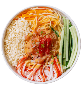 White Rice, Furikake, Salmon, Crab, Tobiko, Spicy Mayo, Cucumber, Pickled Green Papaya, Crispy Tempura & Green Onion.