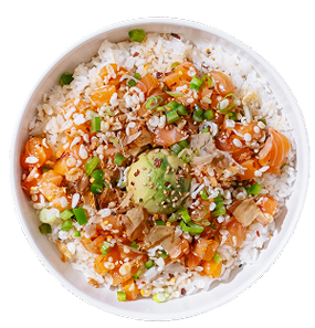 White Rice, Furikake, Salmon, Avocado, Nikiri Sauce, Jalapeno, Chili Flakes, Green Onion, Bonito Flakes & Crispy Mix.